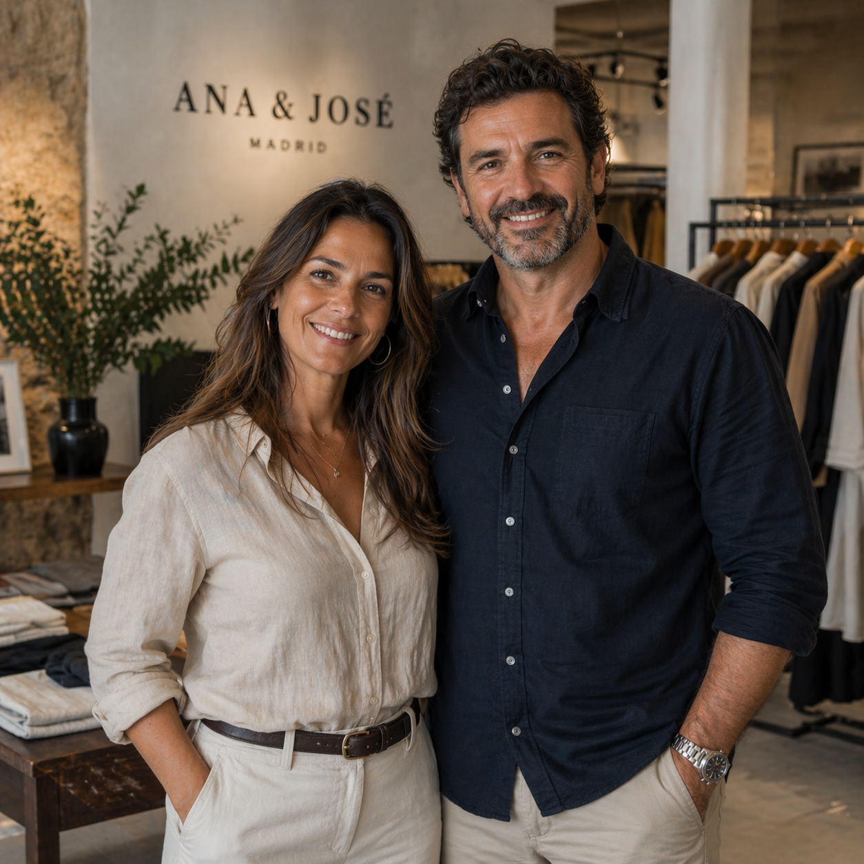 Ana y José son los fundadores de nuestra tienda y comparten una auténtica pasión por la moda desde siempre. Ana se formó en diseño de moda y José en gestión de retail, combinando creatividad y visión empresarial. Tras conocerse trabajando en el sector, decidieron unir sus caminos y crear algo propio.